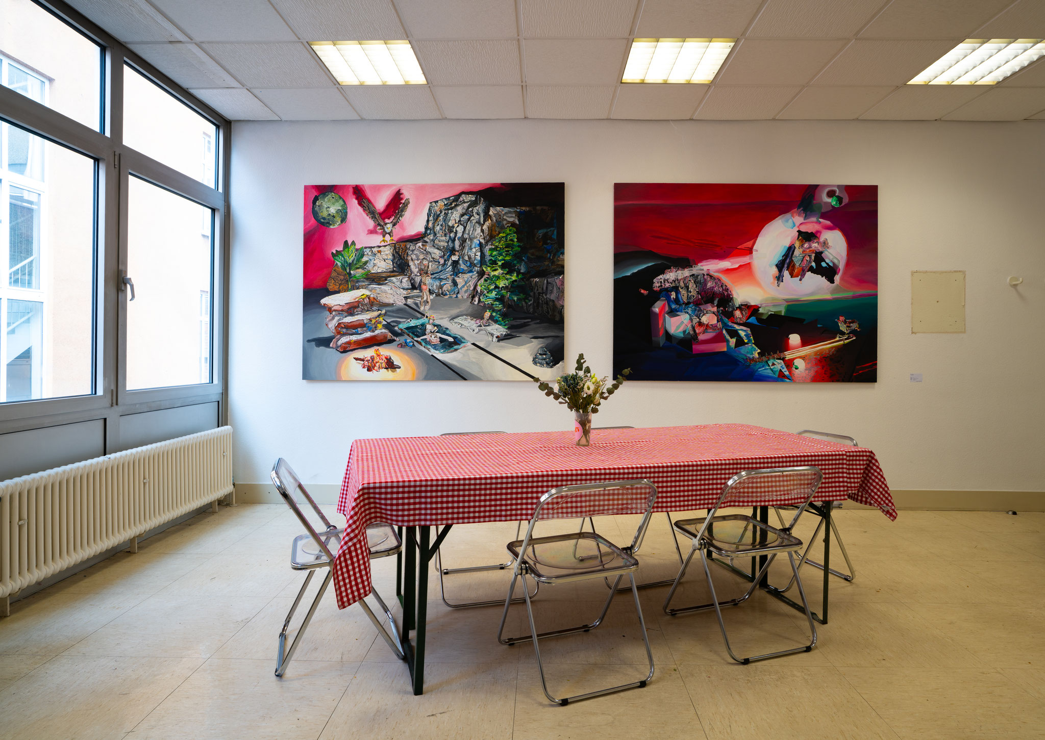 Exhebition in the medical center of team Manu in Frankfurt. The exhebition started even a hard and full covid 19 lockdown was taking place, as Team Manu is a medical center which stayed open. The 12 pieces are currently and temporaly borrwed to the medical center since January 2021.