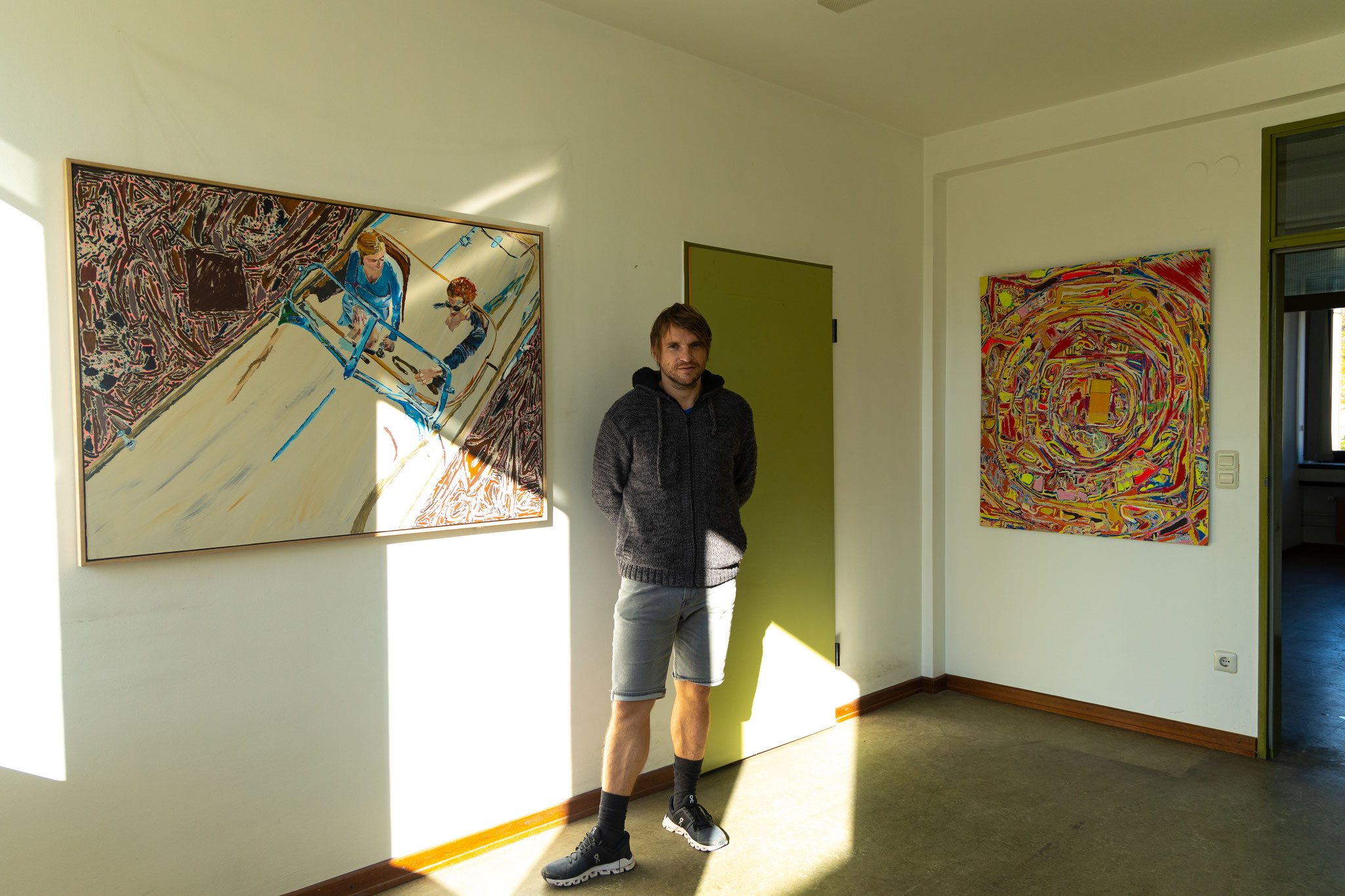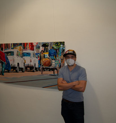 Thank you next was a 4 day group exhebition with 12 different kind of painting position at the flowershop in Offenbach Main. Philipp Langer took place with four pieces at the very open, buitiful and lightful place perfectly made for the covid times at the harbour island in Offenbach. The exhbition was visited by about 80 people due to covid restrictions.